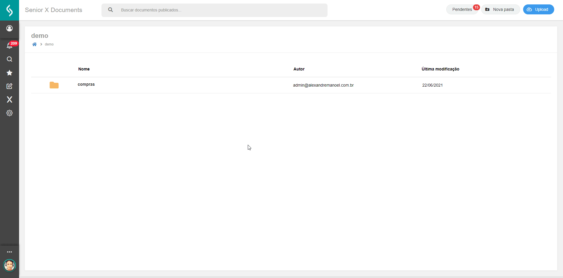 Atribua a permissão “Gestor de documentos” com cuidado! As demais permissões locais são ignoradas quando o usuário possui o privilégio de gestor, lhe fornecendo acesso total às informações da aplicação. O usuário poderá realizar alterações sensíveis, como a remoção de permissões de documentos e pastas ou exclusões.