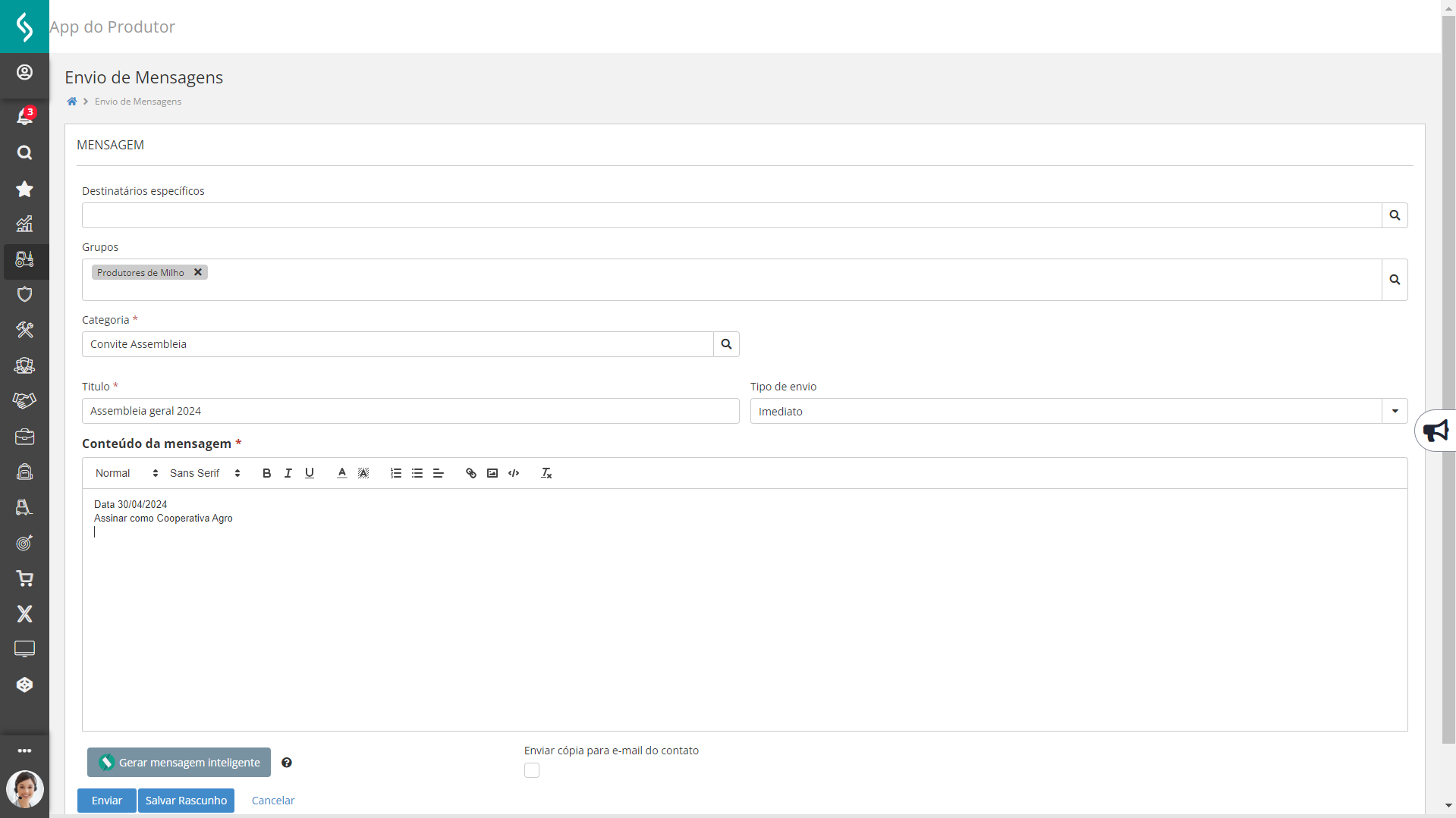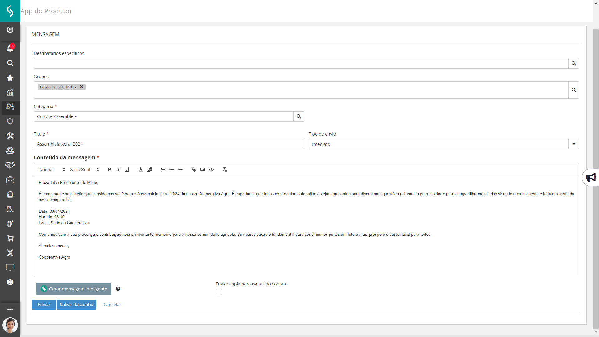 - Após o preenchimento, clique no botão Gerar Mensagem Inteligente que está em destaque;