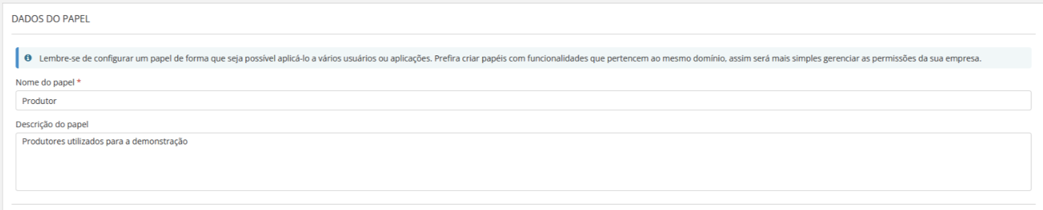 - Em "Dados do Papel", parametrize com o papel de Produtor já existente;