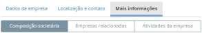 - Mais informações: informações dos sócios da empresa, empresas relacionadas e atividades secundárias.