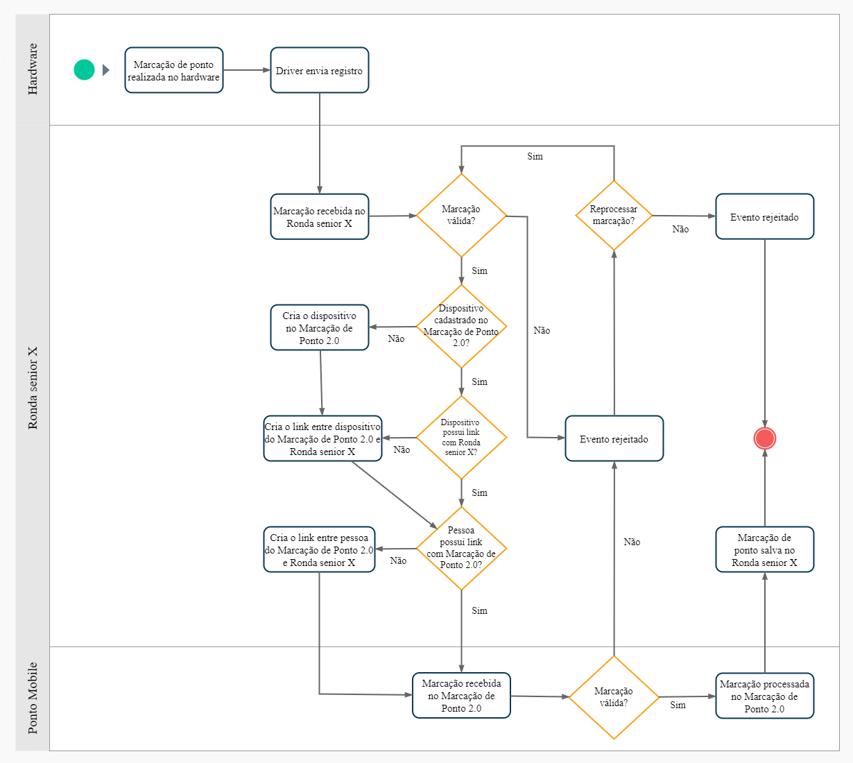 Quando o driver do fabricante enviar o registro de ponto para o Ronda senior X, o cadastro da pessoa no Ronda senior X é associado ao cadastro dela no Marcação de Ponto 2.0, através do número do CPF cadastrado.