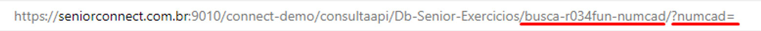 curl --location --request GET 'https://seniorconnect.com.br:9010/connect-demo/consultaapi/Db-Senior-Exercicios/busca-r034fun-numcad/?numcad=12' \
