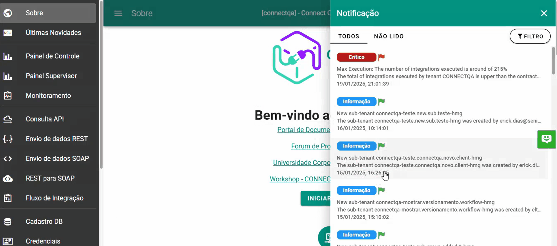 Este manual tem como objetivo oferecer ao usuário uma forma organizada de visualizar notificações lidas e não lidas, aprimorando sua experiência ao simplificar o gerenciamento dessas informações por meio de uma interface clara e intuitiva.