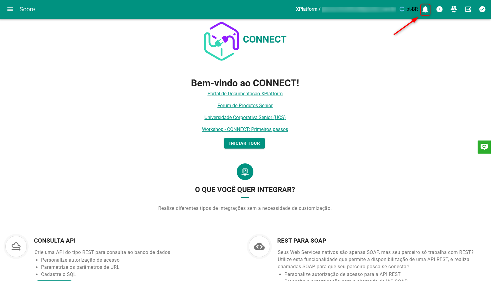 - Clique no ícone Sino de Notificação (localizado no canto superior direito).