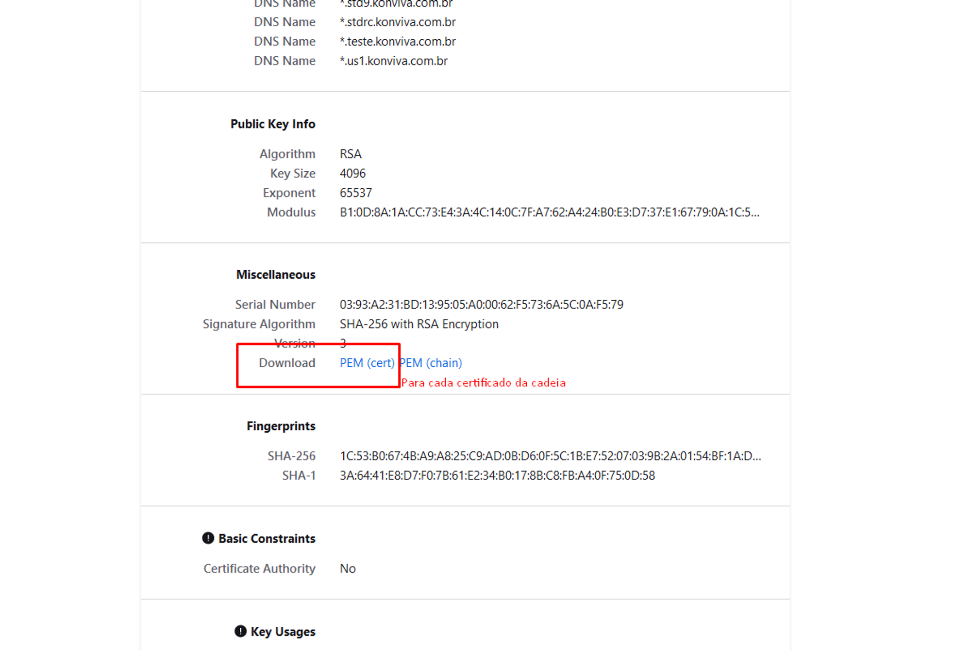 - Baixar o certificado de domínio do servidor que vai receber as chamadas do CONNECT