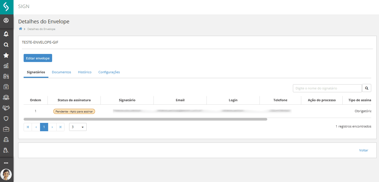 - O signatário está com status Pendente – Apto para assinar;