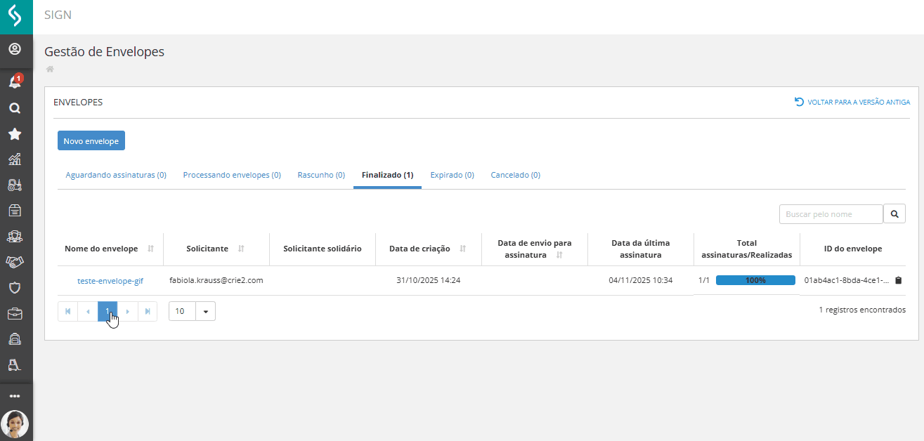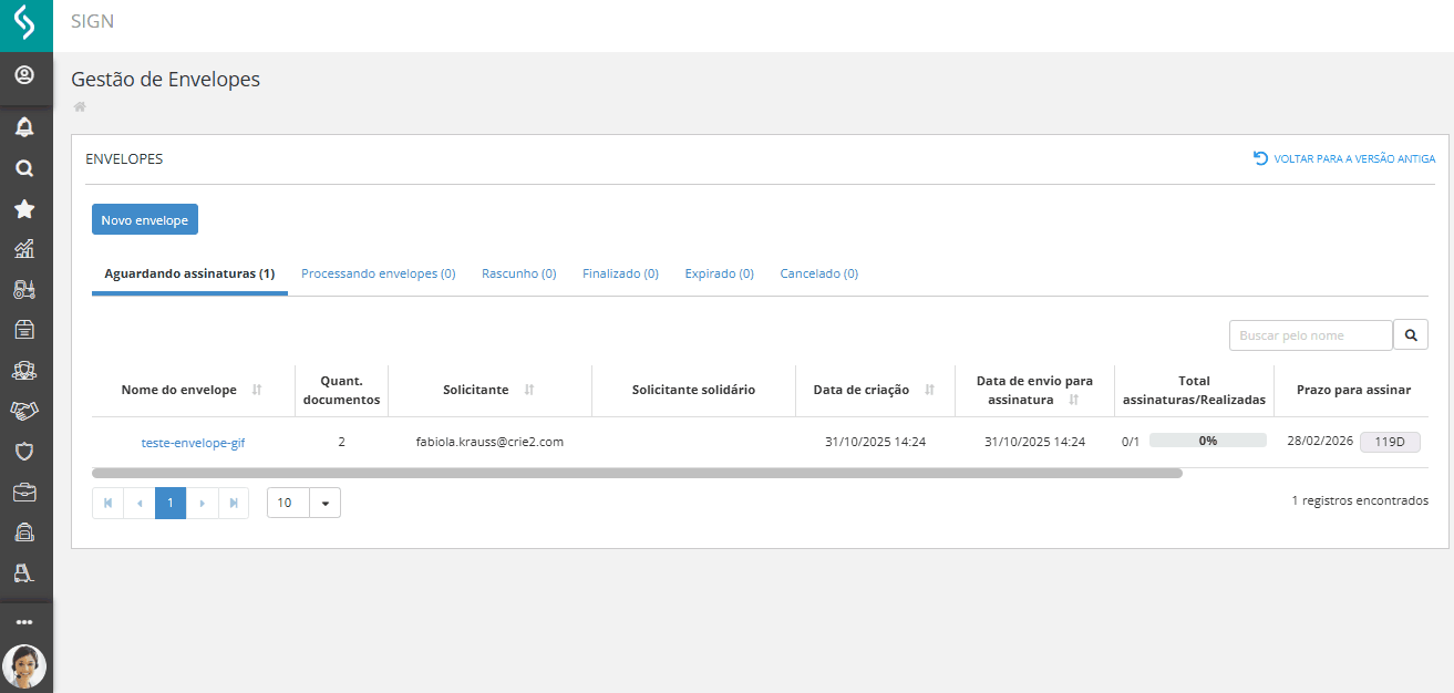 - Acessar nova Gestão de Envelopes