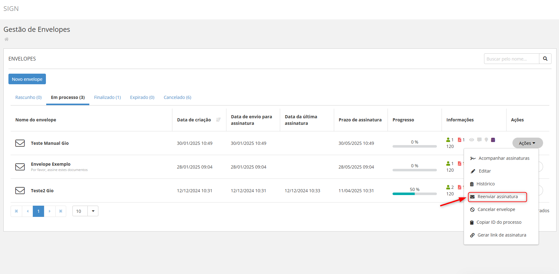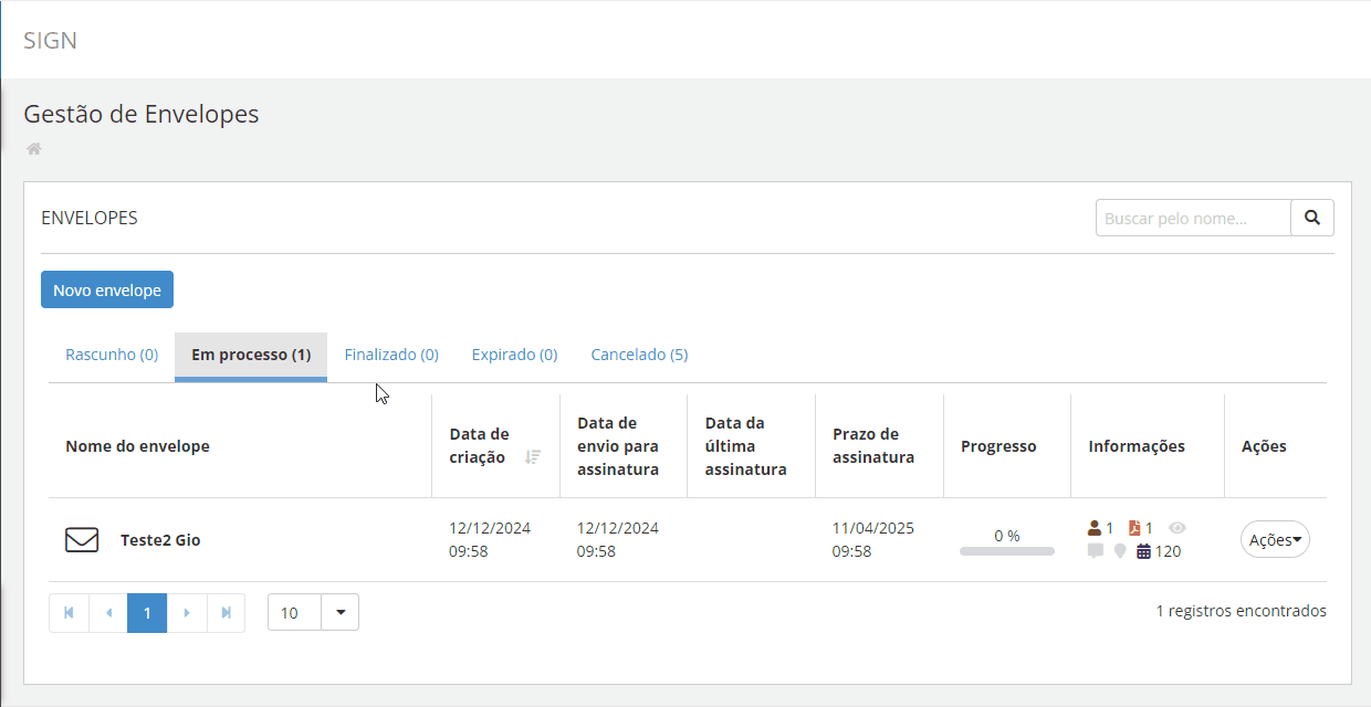 Utilizando o SIGN > Gestão de Envelope