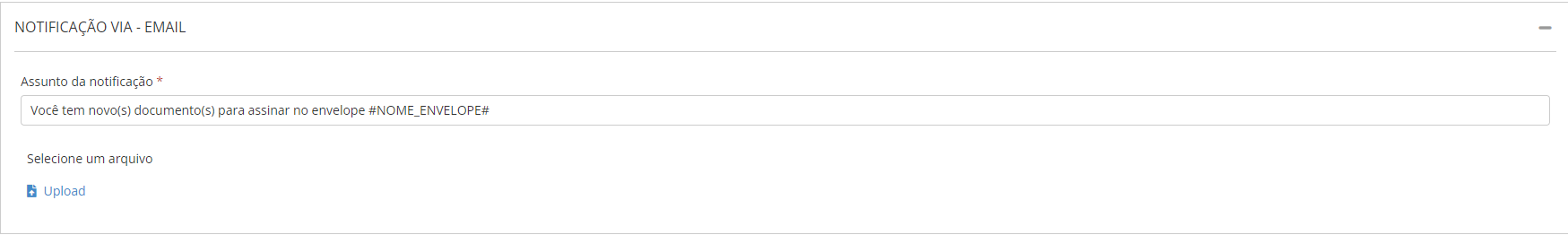 É possível adicionar um assunto à notificação, além de realizar o upload de um arquivo .html, que será exibido como layout do e-mail.