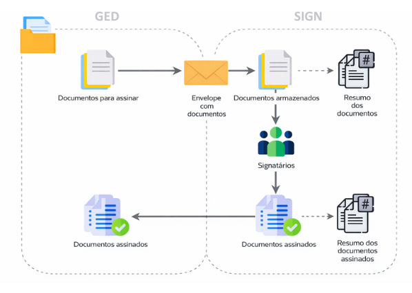 Com o processo finalizado, um novo resumo é gerado para cada arquivo assinado, afim de garantir a autencidade pós-assinatura.