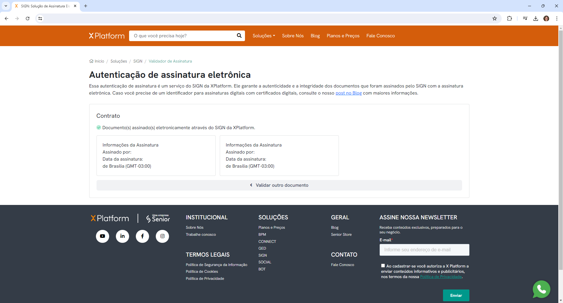 Apenas assinaturas eletrônicas realizadas dentro do SIGN. Assinaturas com certificados digitais podem ser validadas no site do governo federal.