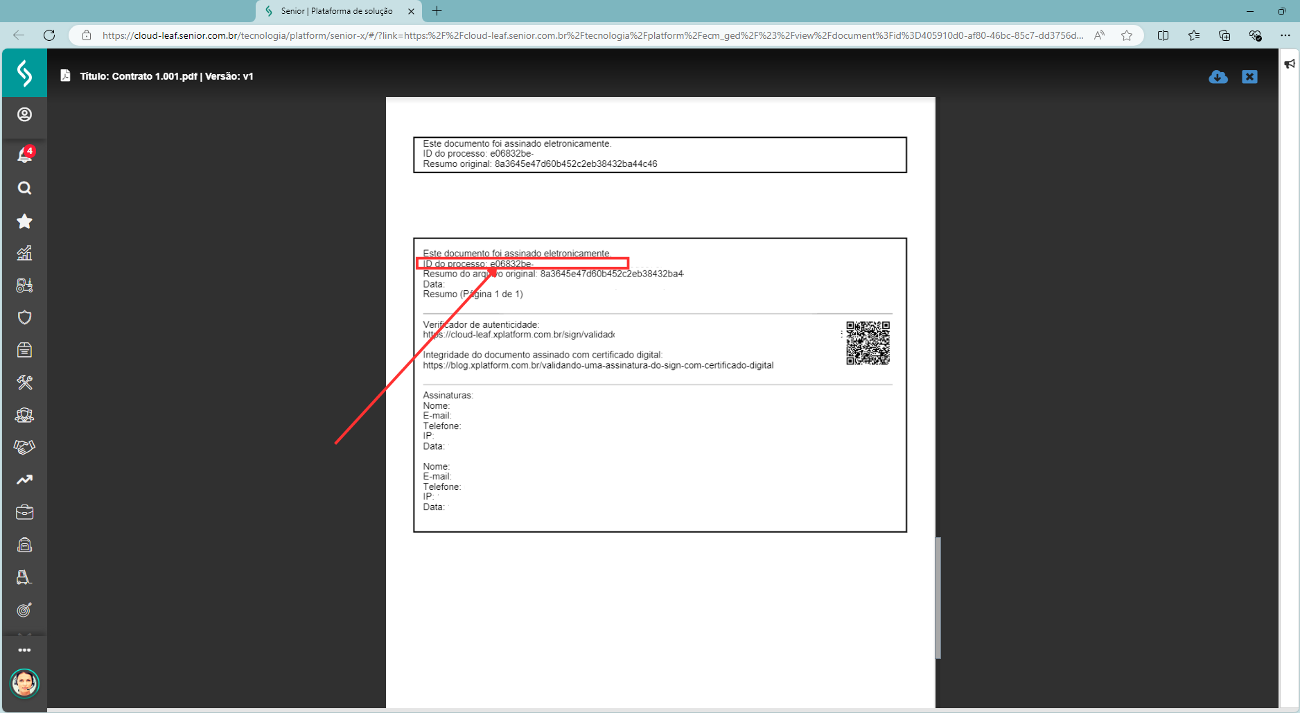 - Verifique os documentos envolvidos, as pessoas envolvidas e o status das assinaturas.