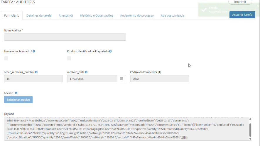 - Resultado no BPM: document_01_documentNumber: NF123456
