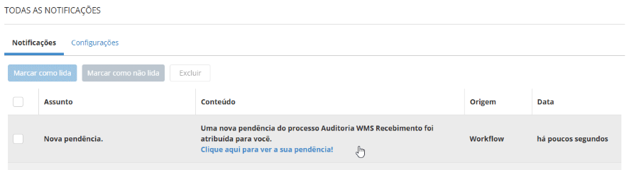 Agora o sistema irá gerar uma nova pendência, que você poderá verificar na central de notificações.
