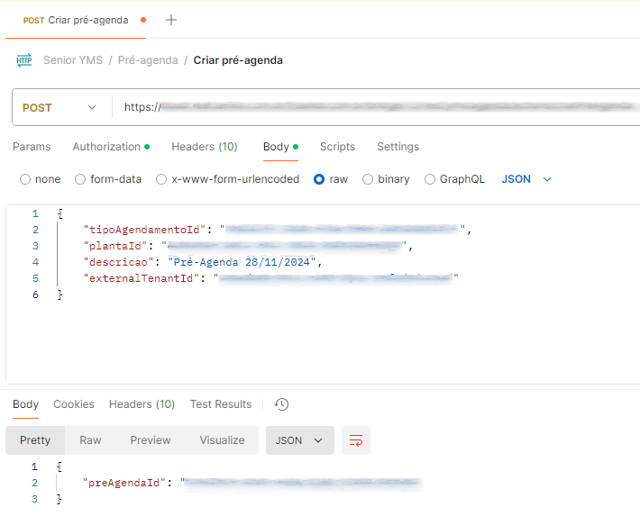 Retorno: Ao ser criada a pré-agenda com sucesso, será retornado o ID da pré-agenda.