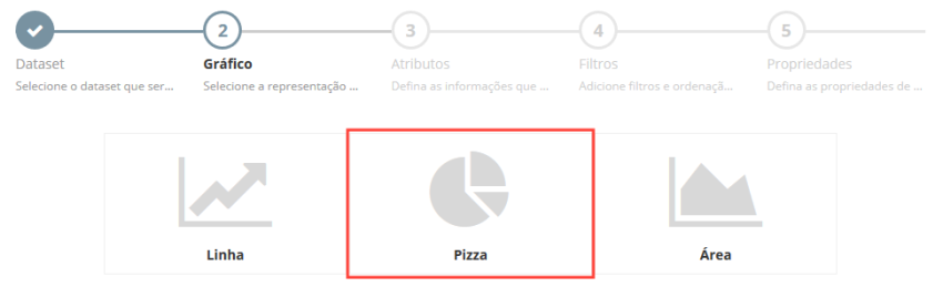 O próximo passo é escolher o tipo de gráfico que deseja mostrar no widget. Neste exemplo será escolhido o gráfico do tipo Pizza: