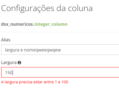 Abra o modal para inserir Alias e Largura do campo, ambos opcionais.