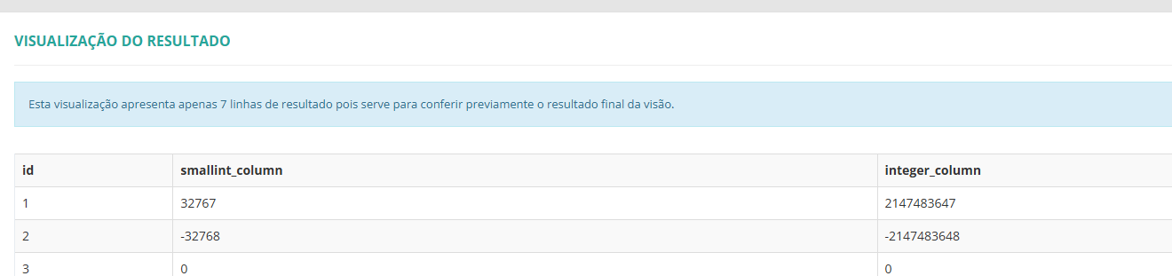 Para os campos numéricos, é possível formatar os valores retornados com separadores de milhar e decimal. Para isso, basta marcar o checkbox Apresentar separadores de milhar e decimais nos campos numéricos e clicar em Salvar. No botão Visualizar, é retornada uma prévia do resultado final para conferência.