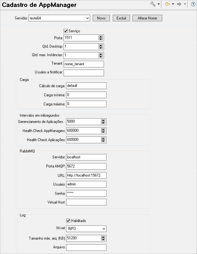 Os valores inseridos nos cadastro do AppManager e das aplicações devem estar de acordo com o ambiente da instalação.