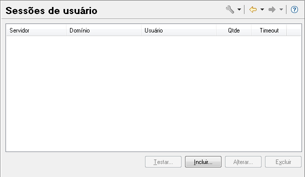 Esta tela permite cadastrar sessões de usuário do sistema operacional Windows. Esse recurso é utilizado para que os aplicativos iniciados pelo Middleware sejam distribuídos em várias sessões de usuário, aproveitando melhor os recursos do sistema operacional.
