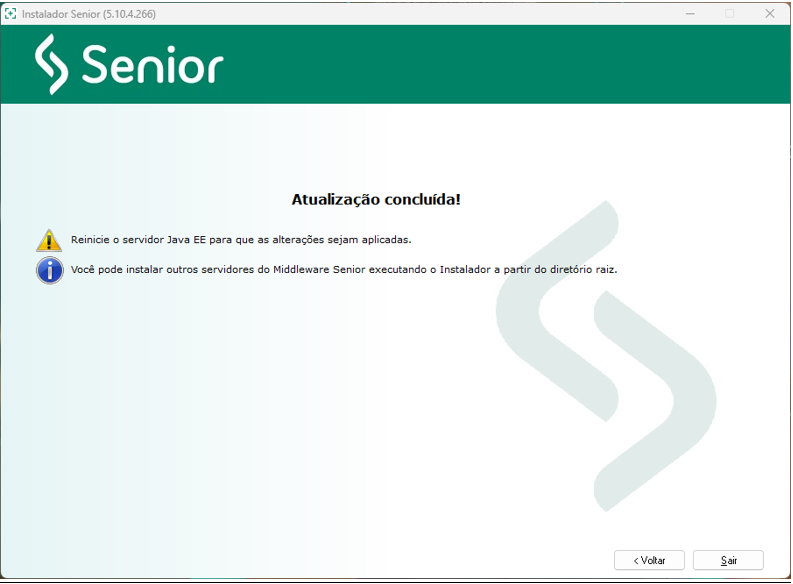 - Ao finalizar a instalação, recomenda-se reiniciar os serviços de Informação, Middleware e WildFly.