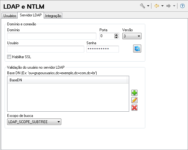 - LDAP_SCOPE_SUBTREE: a procura é feita em todos os níveis a partir do ponto inicial definido em Base DN.
