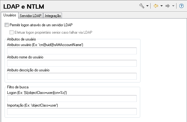 A utilização da forma de logon via LDAP e NTLM consiste no acesso aos sistemas com o mesmo Usuário/Senha de acesso a rede, criado no servidor Active Directory (AD). A autenticação LDAP abre uma conexão com o servidor AD utilizando o usuário/senha cadastrado. Após conectar ao servidor, é executado um Search utilizando o BaseDN, filtro de busca e escopo de busca cadastrados, onde o caracter especial "%s" do filtro de busca será substituído pelo login do usuário. Por exemplo, com o filtro definido e que o nome do usuário seja "Senior", então o filtro de busca utilizado será "(&(objectclass=user)(cn=Senior))". Se o Search não retornar nenhum registro, é exibida mensagem de que o usuário não existe. Caso o Search retornar vários registros será exibida uma mensagem de erro, e se o Search retornar somente um registro, o atributo DN de retorno será utilizado juntamente com a senha digitada pelo usuário para fazer um novo Bind no servidor AD. Caso este Bind seja executado com sucesso, o usuário estará autenticado. Após autenticar o usuário, é verificado se este usuário existe na base de dados da Senior, se existir então a entrada no sistema prosseguirá normalmente, senão será respeitada a configuração de permitir criar novos usuários automaticamente.