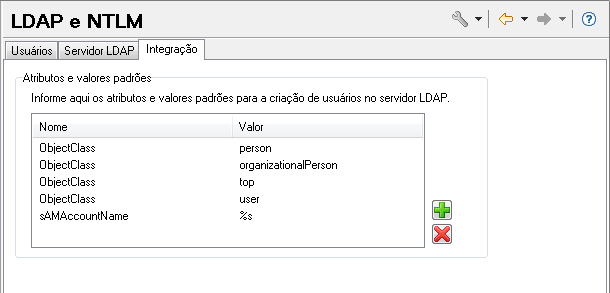 Informe os atributos e valores padrões para a criação de usuários no servidor LDAP