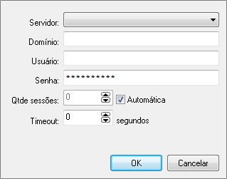 Esta tela permite cadastrar sessões de usuário do sistema operacional Windows. Esse recurso é utilizado para que os aplicativos iniciados pelo Middleware sejam distribuídos em várias sessões de usuário, aproveitando melhor os recursos do sistema operacional.