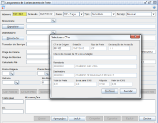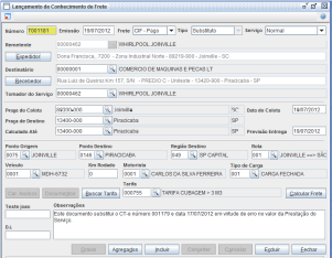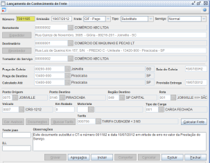 O Frete deverá ser calculado novamente com o valor correto, para então efetuar a gravação do conhecimento. Após este processo, basta realizar o envio do lote, a consulta e a impressão do documento normalmente.