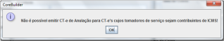 Cabe salientar que este tipo de conhecimento só pode ser emitido nos casos em que o Tomador do Serviço não seja contribuinte do ICMS. Caso contrário, ao tentar emiti-lo, o sistema trará a mensagem abaixo: