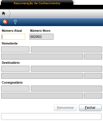 A tela [Renumeração de Conhecimentos] oferece a possibilidade de renumerar um CT-e. Em Operacional > Expedição > Conhecimento de Frete > Renumeração