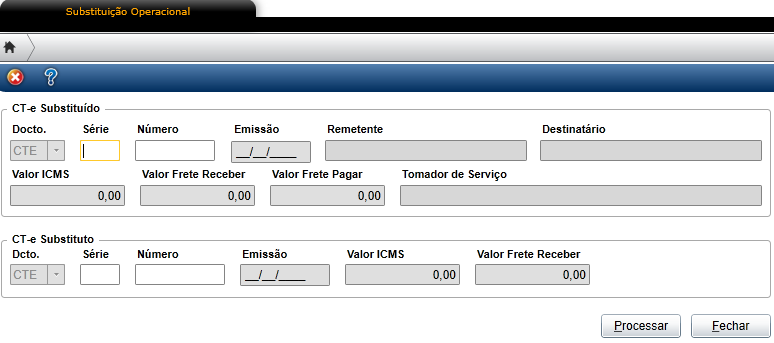 Em Operacional > Expedição > Conhecimento de Frete > Substituição Operacional