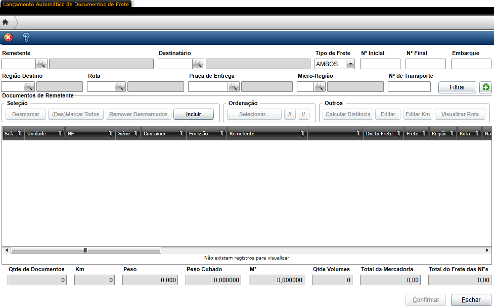 A opção automática é utilizada quando os documentos da mercadoria já constam no sistema, importadas através do XML da NFe, de um arquivo TXT (EDI) ou a partir de uma digitação prévia da NF-e na tela [Lançamento de Documentos de Remetente].