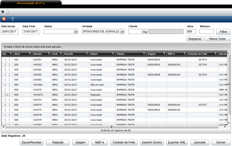 - Permanente: lista os CT-es que foram enviados para o SEFAZ;