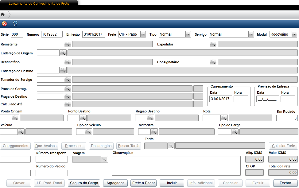 | Consignatário | Informar quem deverá receber a mercadoria |
