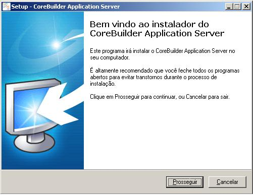 - Execute o instalador do CoreBuilder Application Server, aguarde que será exibida a tela “Bem Vindo”, e será feito uma apresentação da aplicação. Clique no botão Avançar.