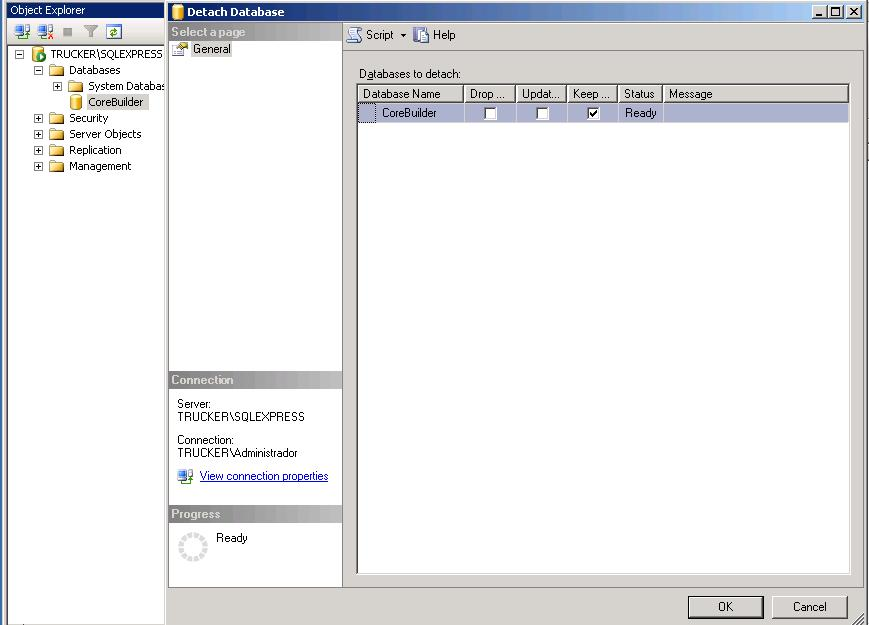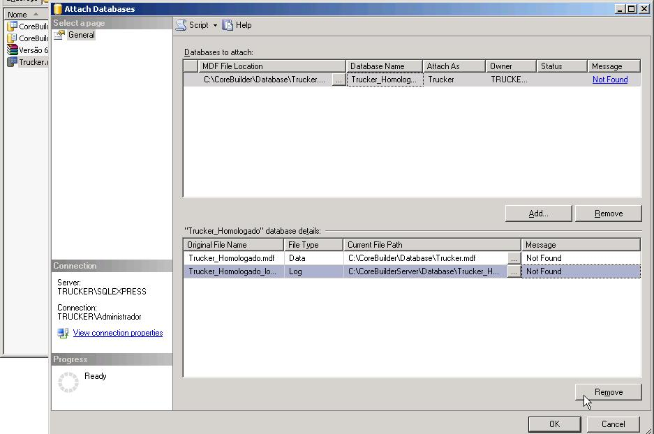 Por default, o ‘ConectionString’ já está configurado para o acesso ao BD ‘SQL Server’, Database ‘CoreBuilder’. Por padrão, a única alteração necessária é a do nome do Database para o correspondente da aplicação. Ex: ‘Trucker’, ‘OpenFrota’, etc.