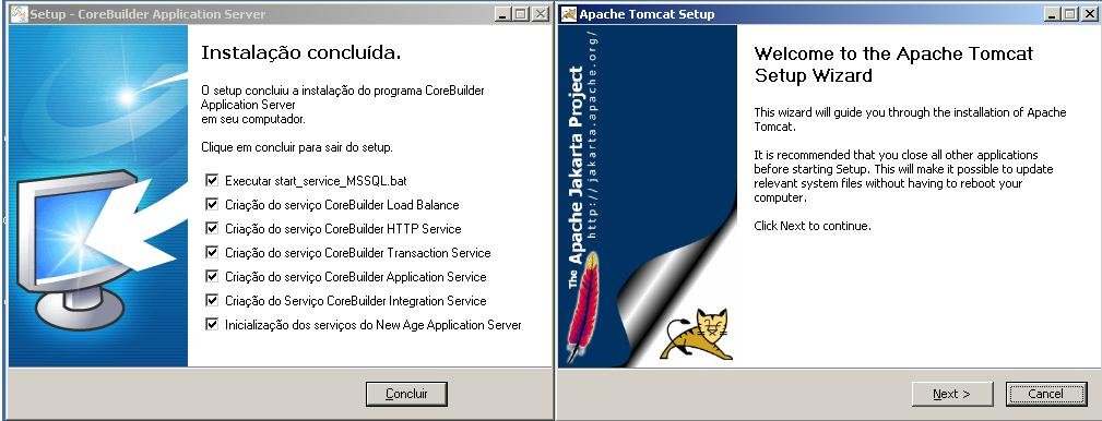 3. Observe que junto com a janela ‘Instalação concluída’ também foi aberta a janela para instalação do Apache Tomcat. O Tomcat é o servidor de aplicações Web. É necessário instalar este programa para conseguirmos rodar o CoreBuilder através do client Ajax na Web. Prossiga com a instalação até aparecer a janela abaixo.