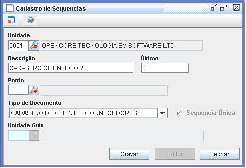 2. Cadastro de Sequência para o Documento ‘Recibo Provisório de Serviço’. Cadastrar no campo ‘último’ o número da última nota fiscal de serviço emitida.