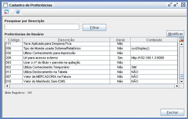 Instruções sobre o preenchimento deste cadastro encontram-se no Manual de Implantação do Módulo Expedição.