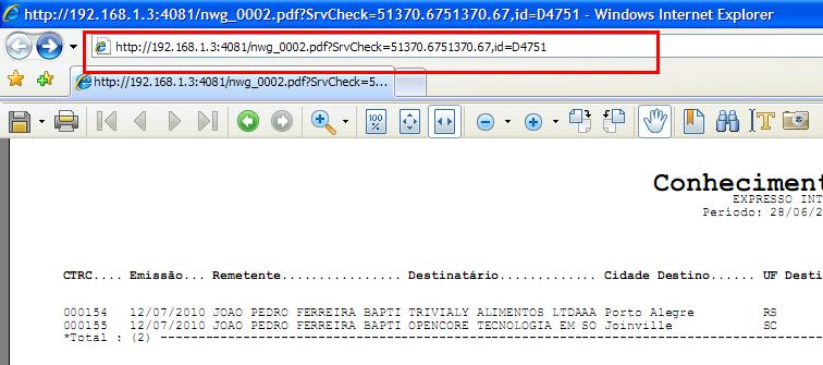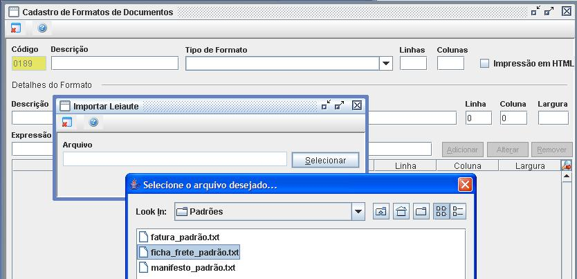 5. Importar o leiaute de impressão do DACTE (Documento Auxiliar de Conhecimento de Transporte Eletrônico), que se encontra no CD de instalação na pasta específica ‘Conhecimento Eletrônico’.