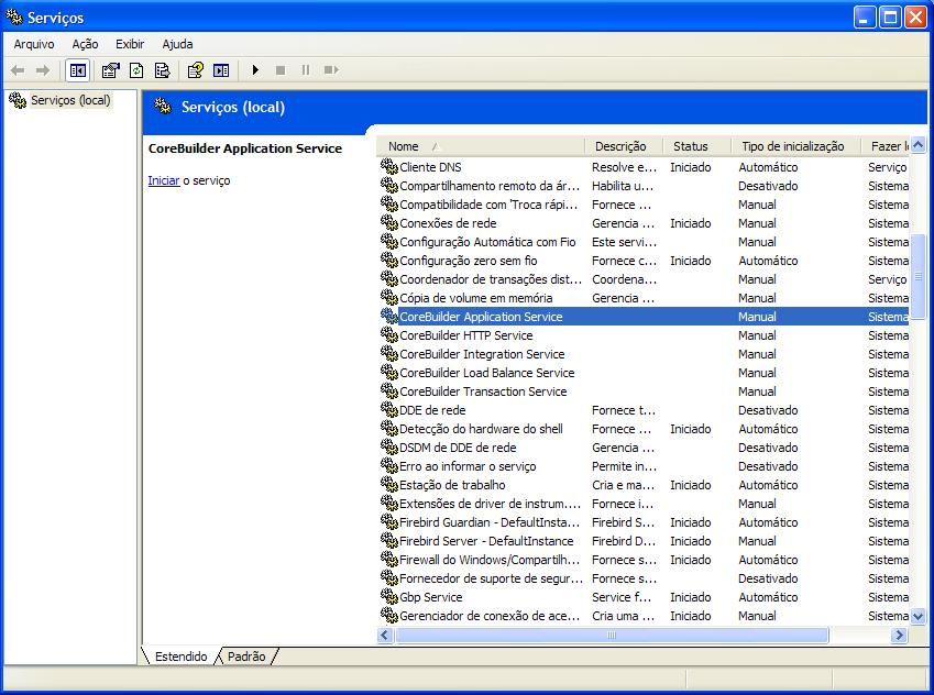 Para o funcionamento do CoreBuilder Application Server é necessário o “Start” dos seguintes serviços: