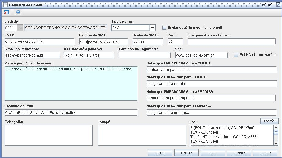 Criar a pasta ‘C:\CorebuilderServer’ (caso não exista) e copiar para ela o arquivo ‘envia.bat’ que se encontra na pasta ‘Email HTML’ no CD de instalação.