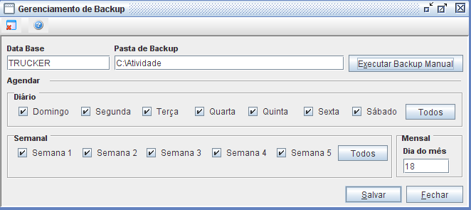 Ex: TRUCKER_MES_12.bak Este exemplo representa o backup do mês de dezembro e será sobrescrito todo ano.