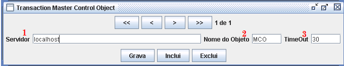 Clique no Menu Arquivo, depois selecione a opção Transaction Master Control Object, informe o(s) servidor (es) que responderam ao Transaction Server. O Nome do Objeto sempre será MCO e o TimeOut por default é 30. Após realizar a configuração o botão “Grava” deverá ser pressionado.