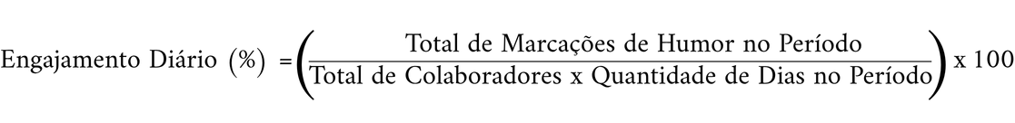 O Engajamento Diário (%) representa o percentual de participação dos colaboradores, considerando todas as marcações de humor realizadas em relação ao total possível no período analisado.