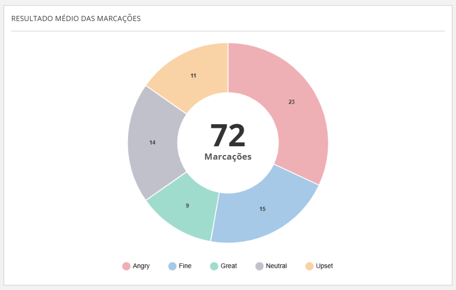 - Total de Marcações: No centro do gráfico, é exibido o número total de registros de humor realizados no período. Neste exemplo, foram feitas 72 marcações.