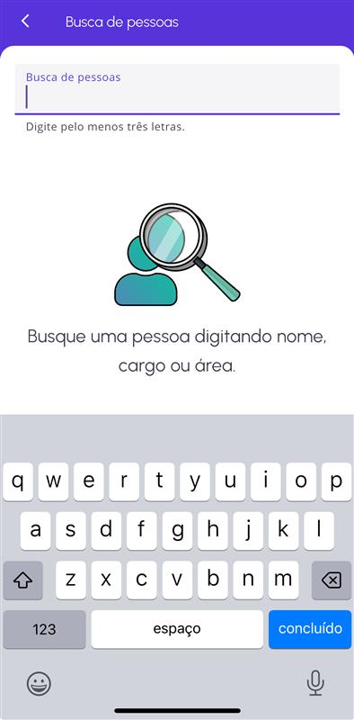 - No campo de pesquisa, comece digitando algum termo relacionado à pessoa que você quer encontrar. Você pode pesquisar por palavras-chaves referentes a qualquer um dos itens abaixo:
