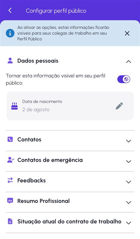 - Toque em Configurar perfil público na tela que pretende configurar (Pessoal, Profissional ou Contratual).